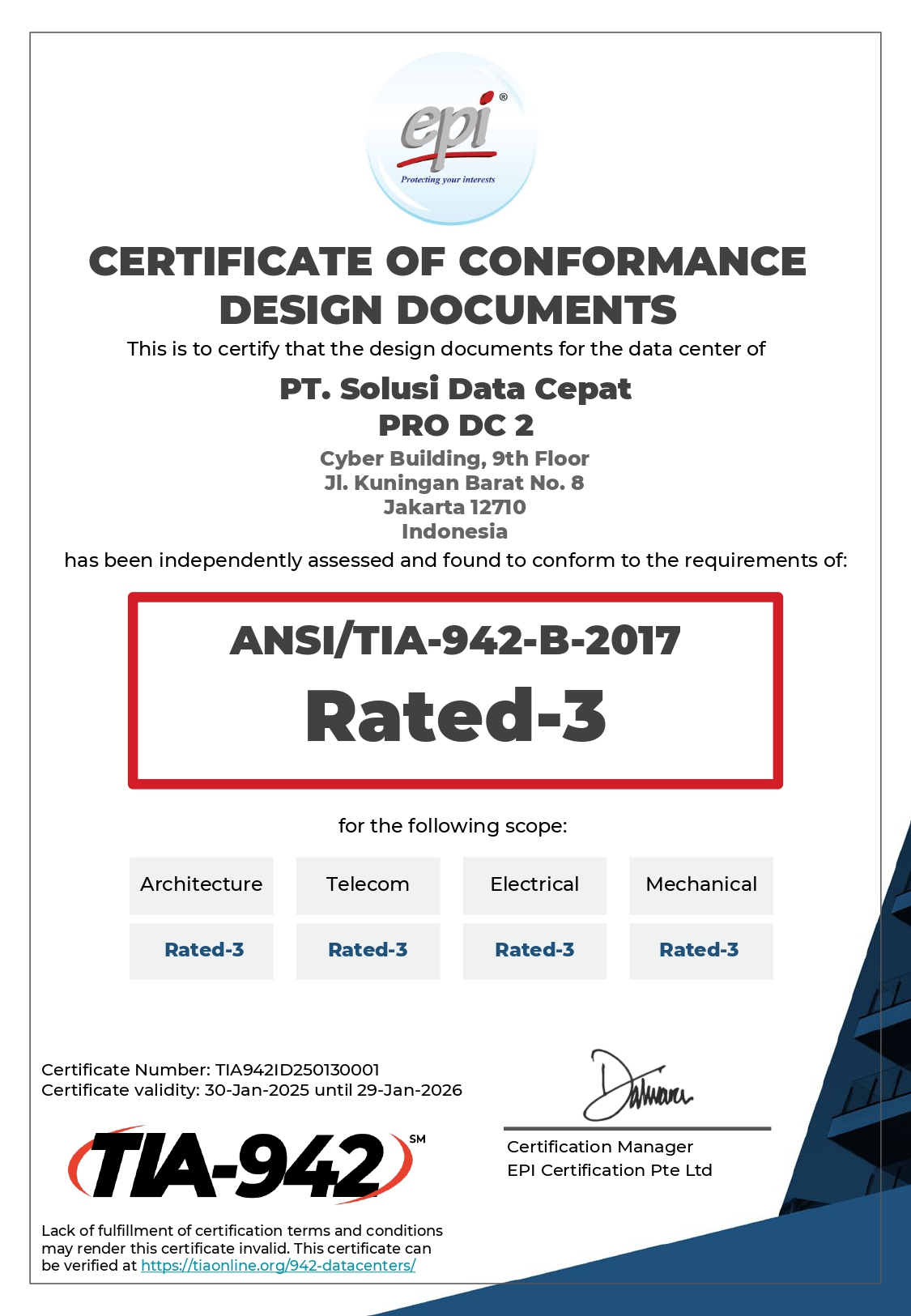 Saat ini, Pro Data Center dengan sertifikasi fasilitas rated-3 yang didukung dengan fasilitas keamanan dan kemudahan interkoneksinya berlokasi di Gedung Cyber 1 lantai 9 (tersedia 200+ rak) serta dilengkapi dengan MMR (Meet-me Room/Open Rack) dan Close Rack. MMR adalah ruangan yang digunakan untuk melakukan koneksi antar server baik dari ruangan rak ke konektivitas dan server yang terdapat di rak lain.